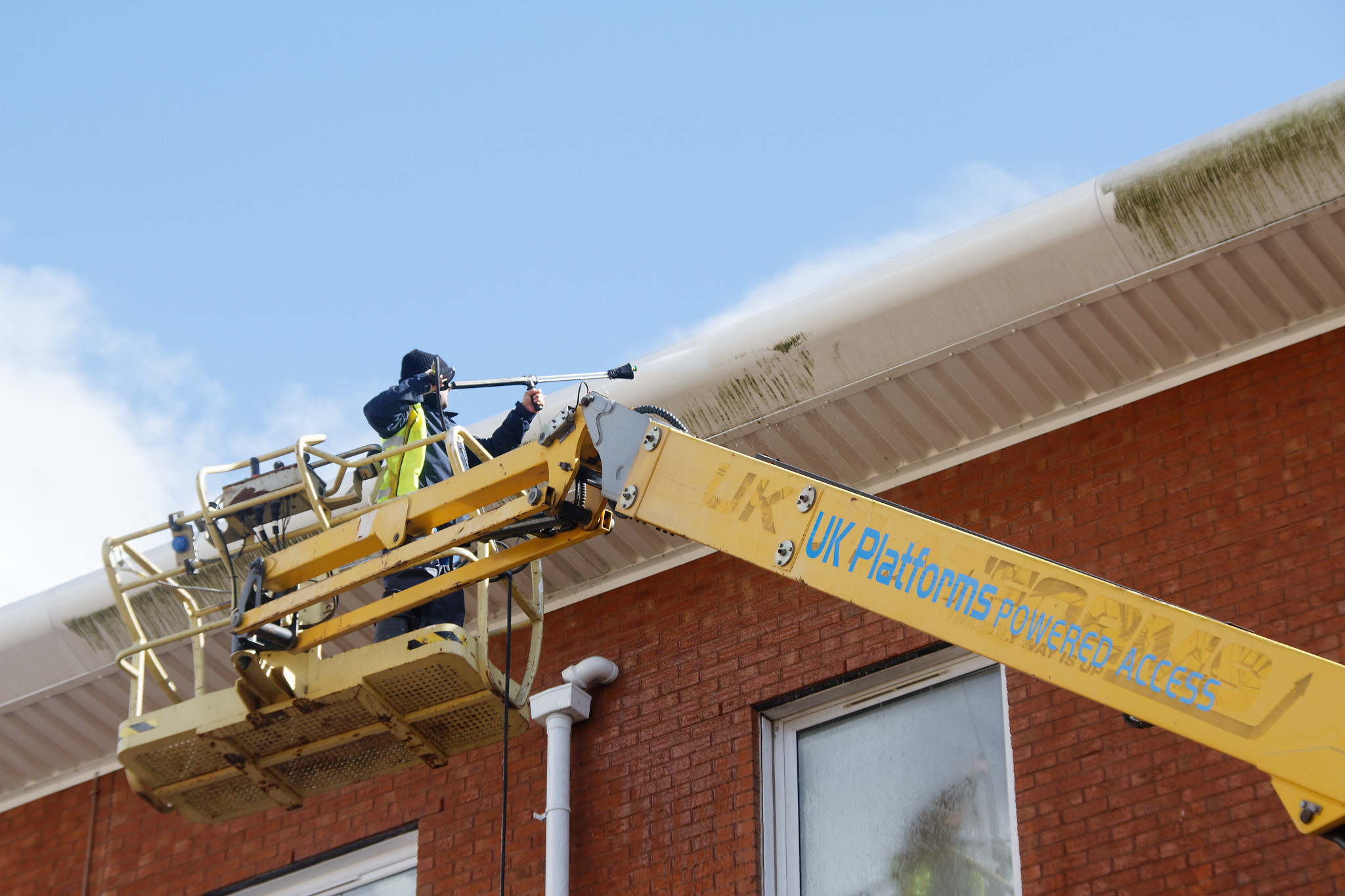 While the majority of our work is ground based, we are able to offer hi-level, fully insured, pressure washing services via raised platforms where access is available to Residential homes and apartment blocks.