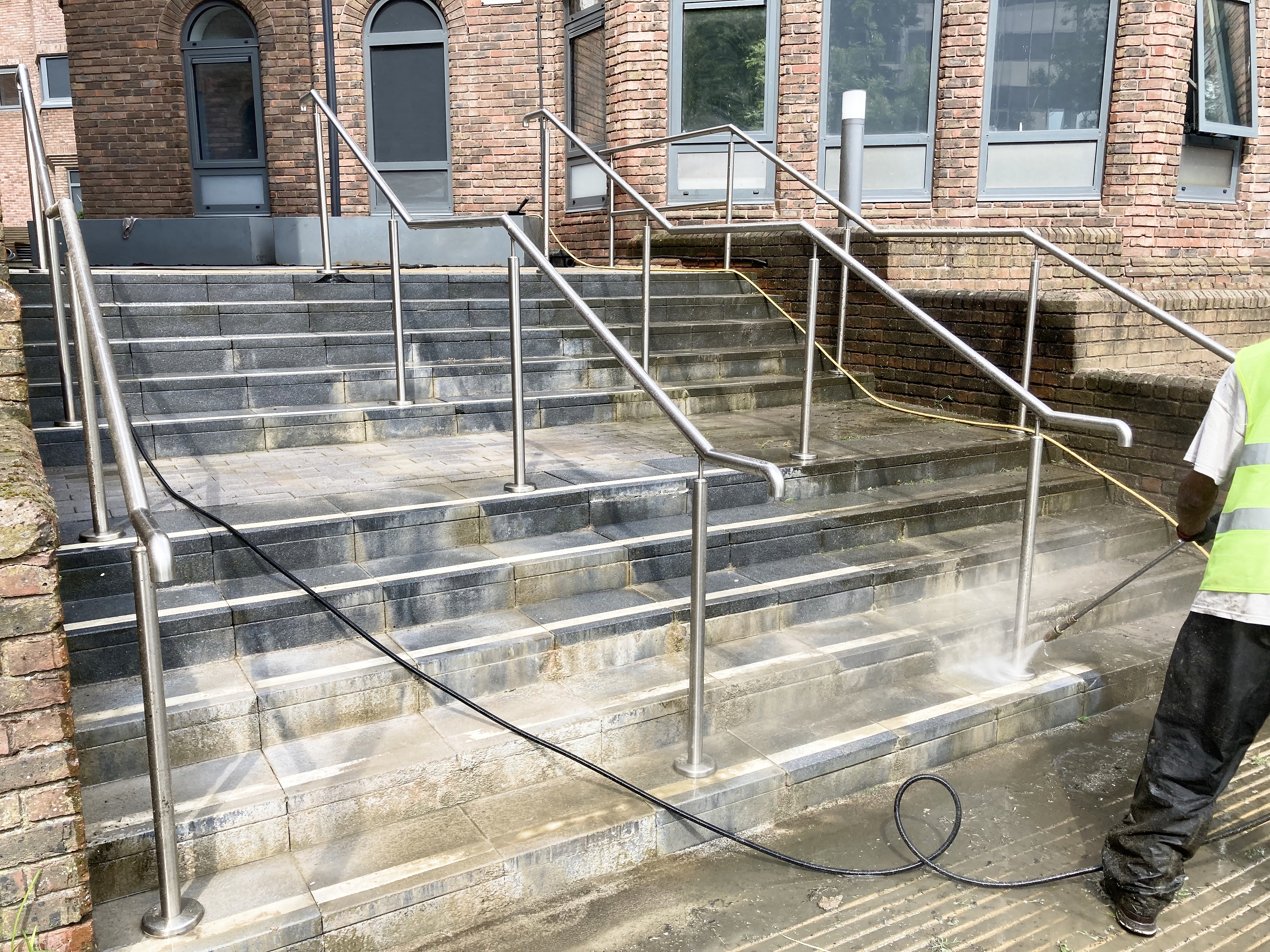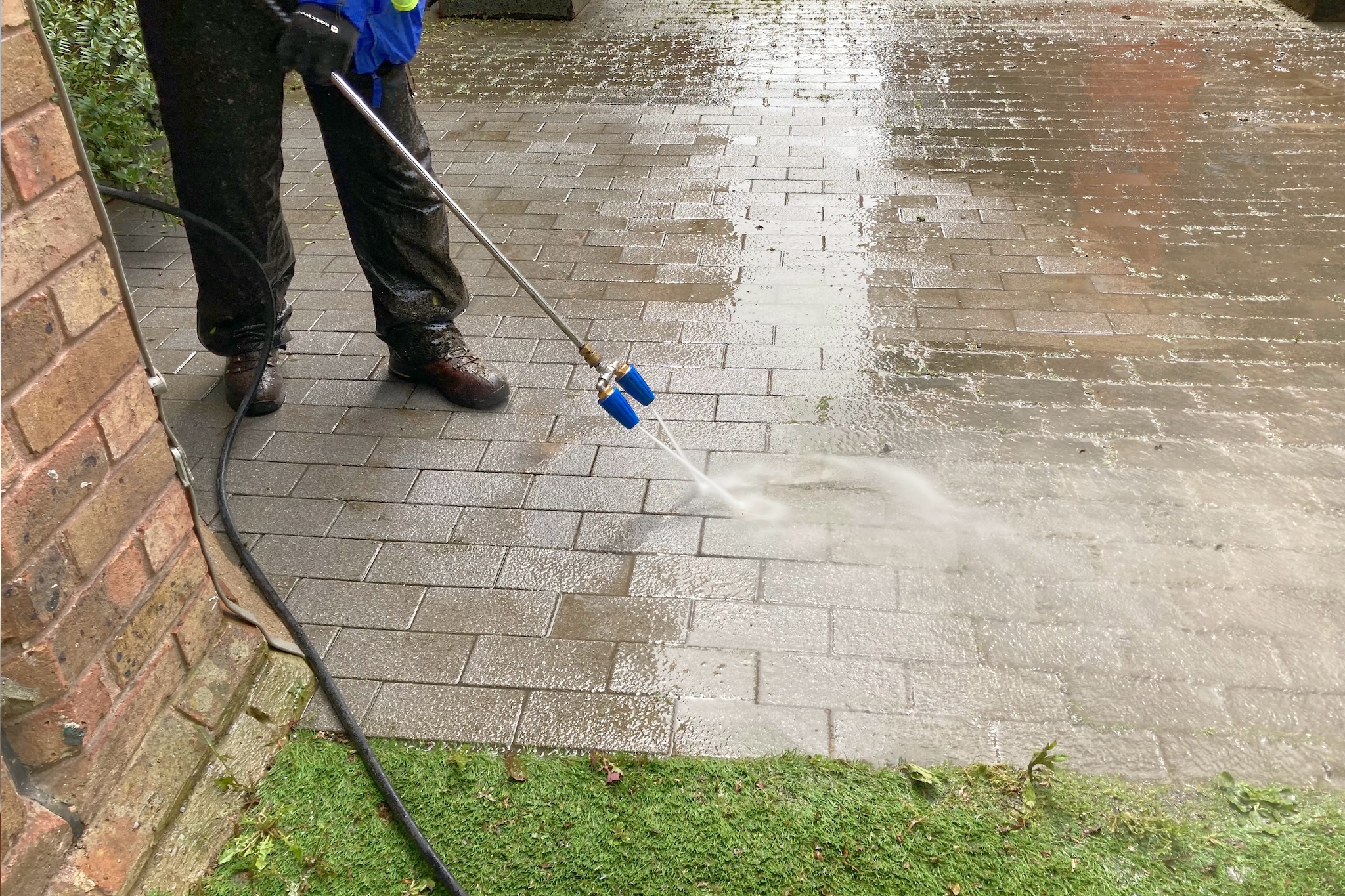 Our pressure wash team uses controlled pressure washing techniques to clean patios, paths, and other outdoor surfaces to keep them looking fresh. We are able to work on concrete, sandstone, and slate surfaces without damaging them in any way.